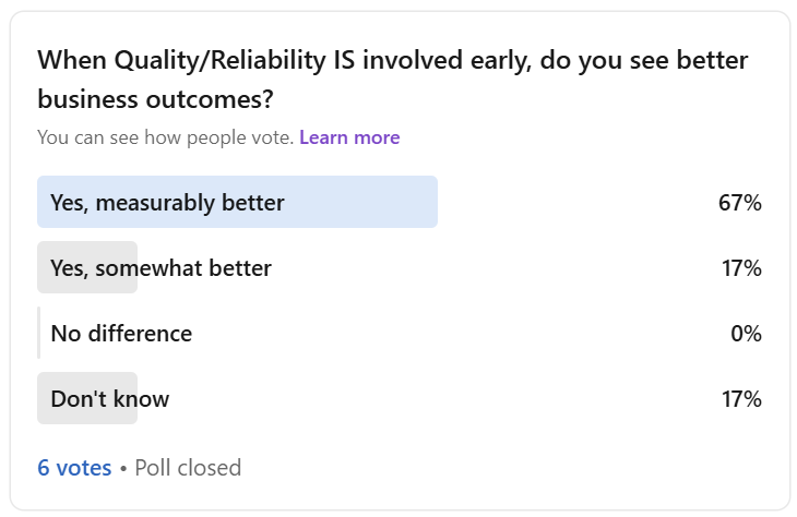 The warning was clear: if quality professionals don’t adapt, decisions will be made without them. Decisions will be based on gut instinct and abbreviated metrics instead of proper quality methods. The business loses money. Teams lose capability. And quality loses its seat at the table.